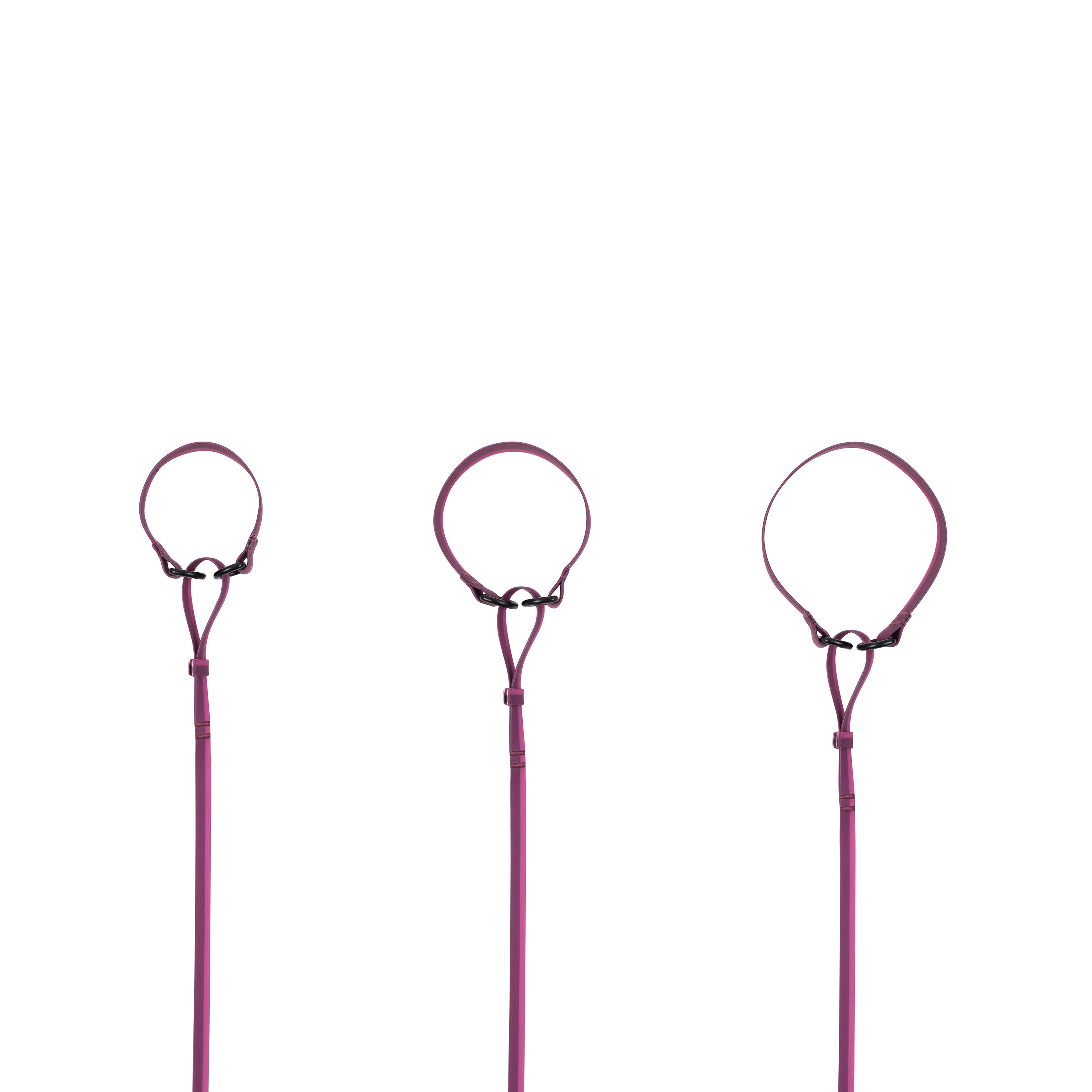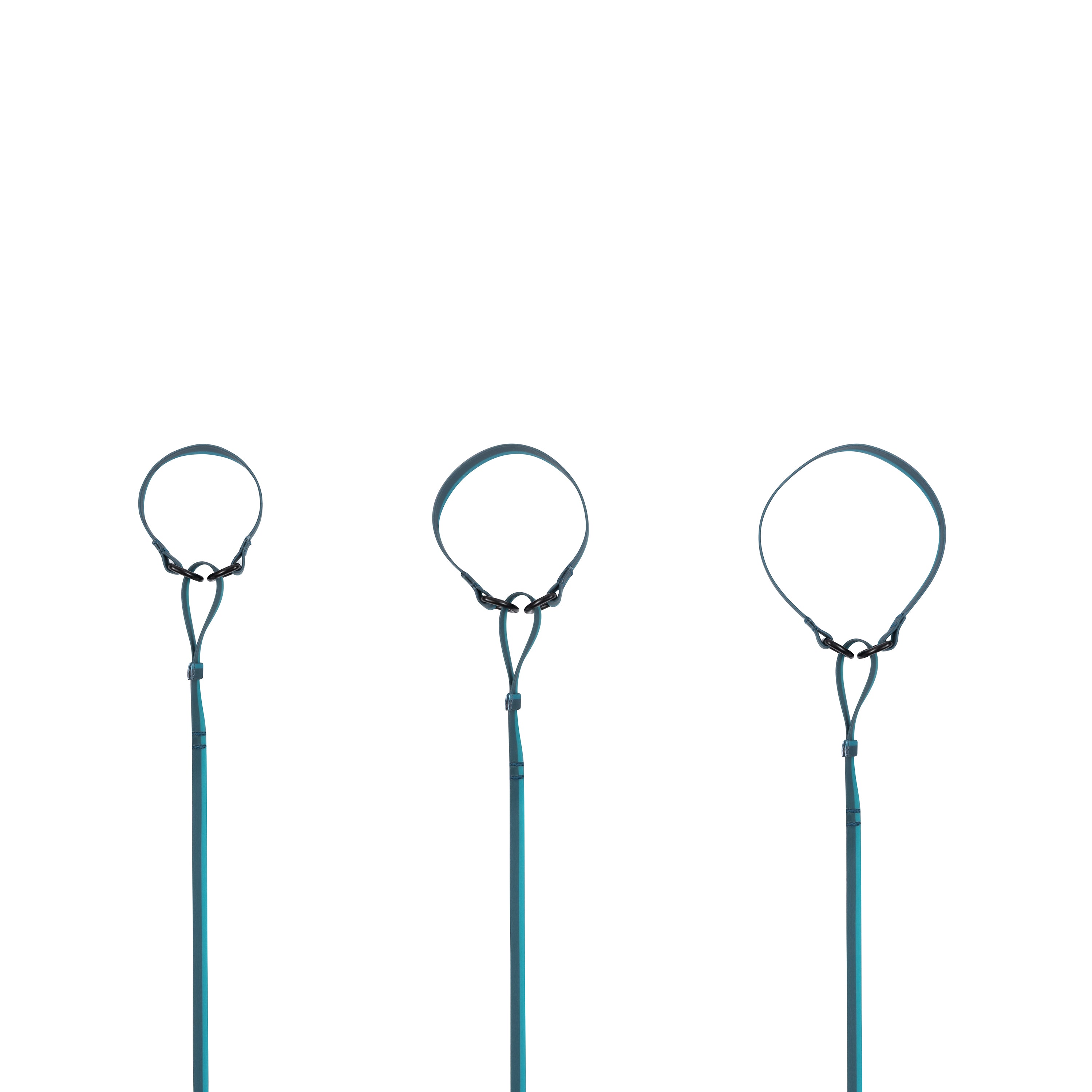 The product has no hooks or buckles, which, together with the softness of the material, makes it easy to store in your pocket. The two D-rings are made of matte black aluminum. SLIPSET is available in two tone-on-tone colors and three sizes, with a large opening that makes the collar very adjustable. The product comes in a canvas bag.